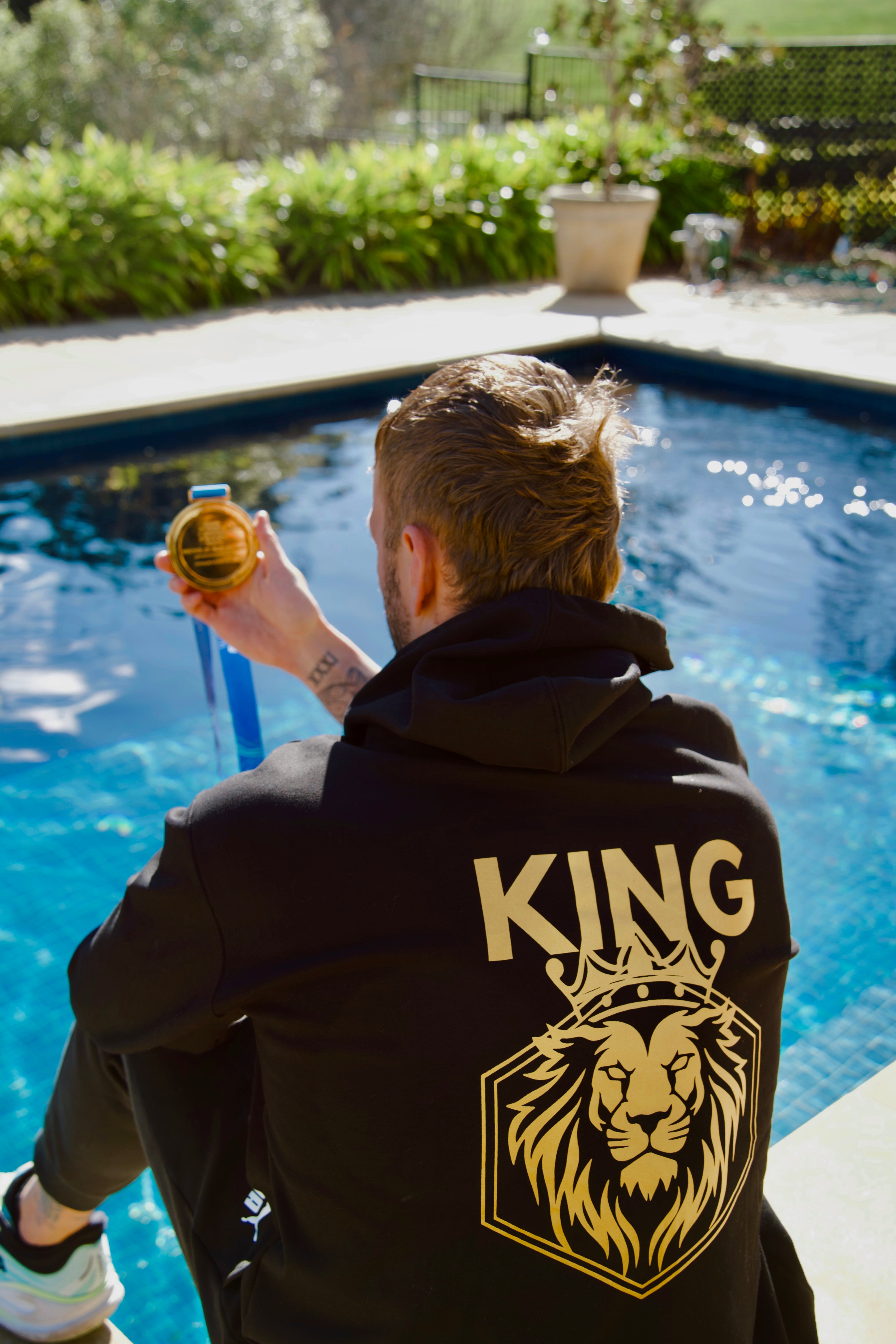 A bold King Lion emblem on the back — a symbol of strength, confidence, and leadership in and out of the water